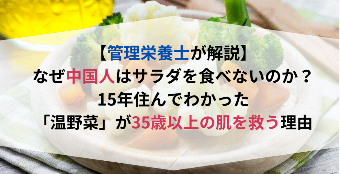 こんにちは! Soigner Healthcare代表、上海在住15年目の管理栄養士、SAYA(@s.diet … 続きを読む 【管理栄養士が解説】なぜ中国人はサラダを食べないのか?15年住んでわかった「温野菜」が35歳以上の肌を救う理由